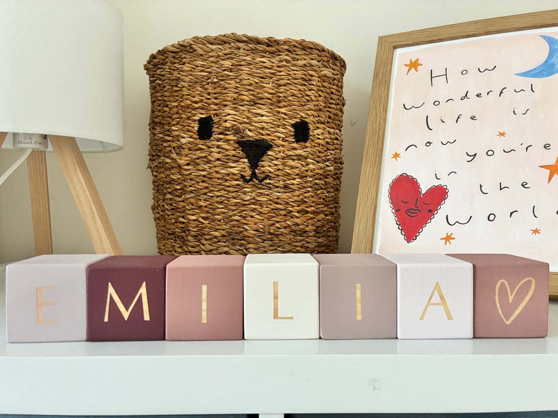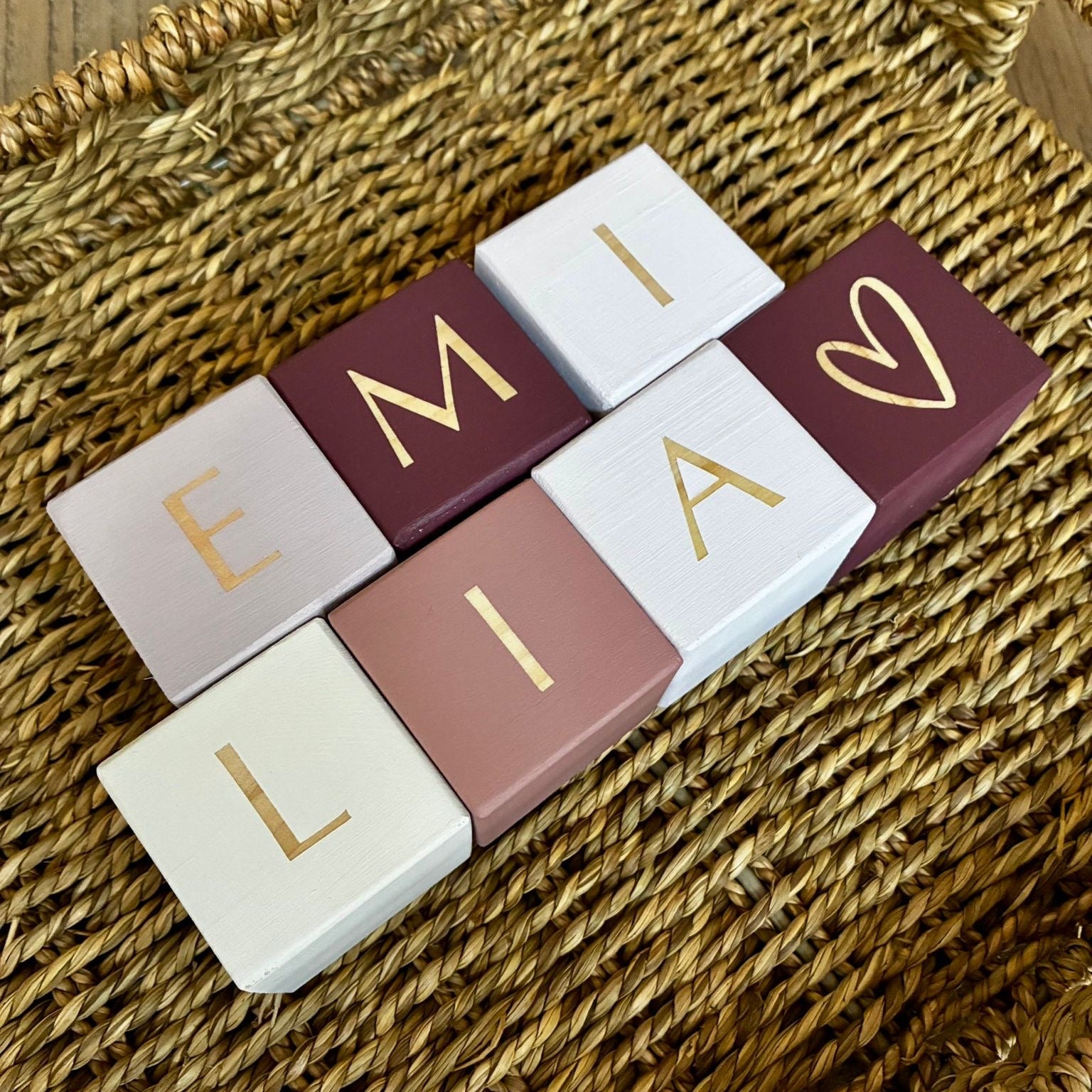 Add a heartfelt, handcrafted touch to your little one's nursery with these beautiful personalized wooden name blocks. Each block is carefully crafted from quality wood and the set is personalised with your child's name, creating a truly unique piece of decor that celebrates them.. You can even add one or two of our character blocks to the set - a heart for a little girl, a star for a boy, a little Lion for a Leo, a Daisy for a Daisy - think outside the box!